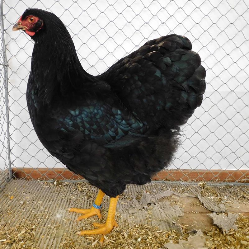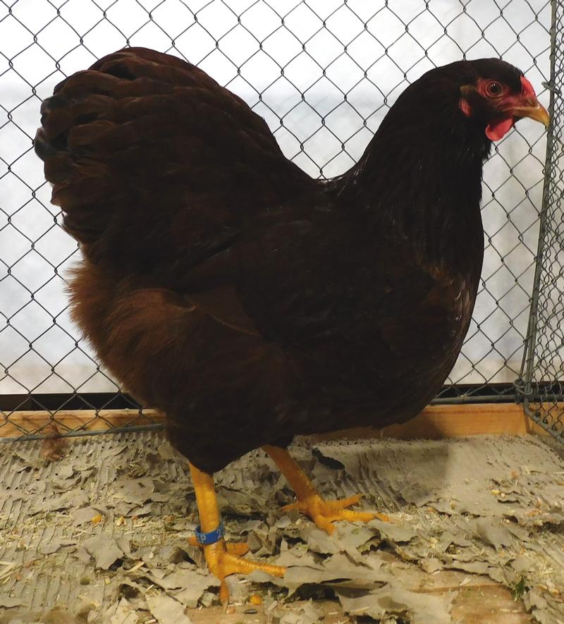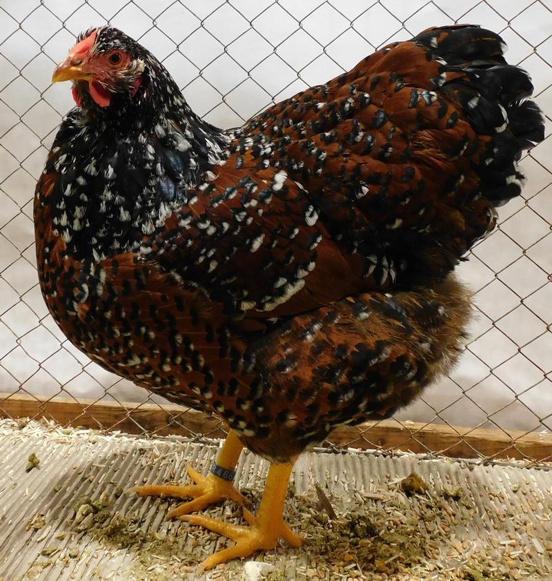 Für die sieben Hähne war der Schautermin etwas früh, was sich natürlich auch in den Kritiken wie „Abschluss ausgereifter und voller” oder „Abschluss gefüllter und gerundeter“ niederschlug. Es reichte aber in der Regel noch zu 94-95 Punkten. Ein Tier erreichte sogar hv (96 Punkte). Die Spitzentiere mit den entsprechenden Bewertungen waren hauptsächlich Hennen. Sie waren fast alle komplett fertig und konnten mit entsprechendem Gefieder, aber auch mit der dazugehörigen Beinfarbe, roten Kämmen und Kehllappen punkten. Die Tiere, welche jetzt noch frei im Stand waren, ansprechende Steigung und Körperlänge hatten, kamen in die obersten Preise (2x V, 3xhv und 4x 95 Punkte).